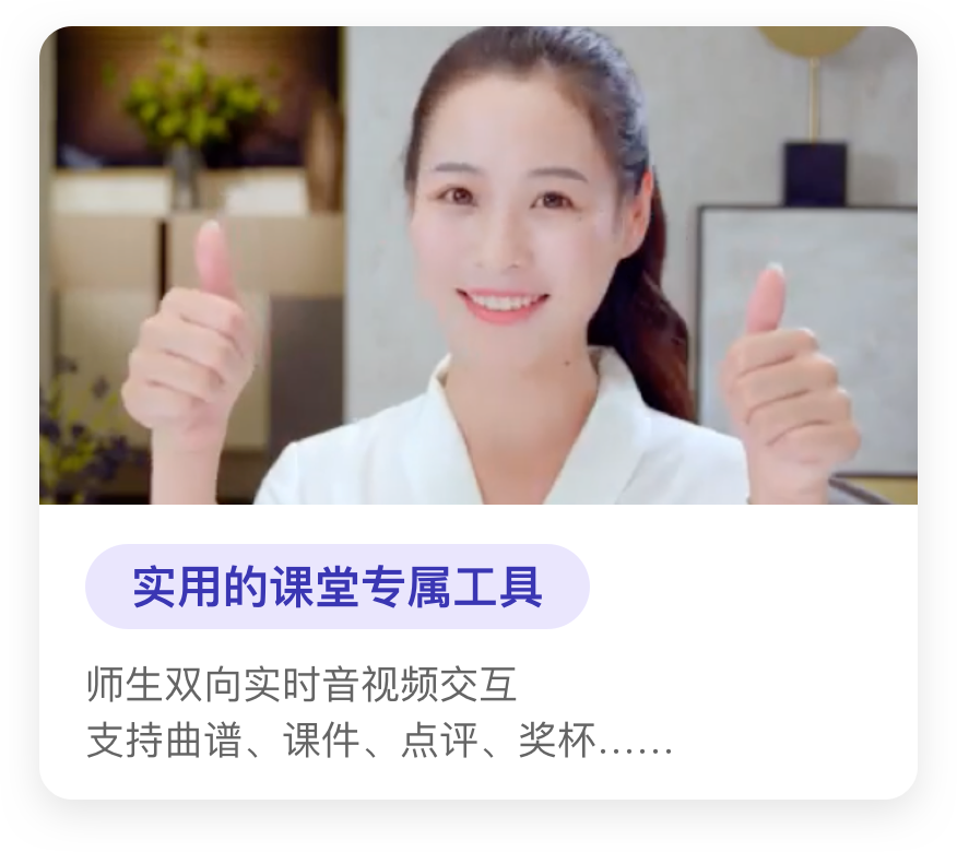 曲谱批注、课件分发、举手应答、奖杯撒花……各种工具一应俱全;课后点评反馈闭环,家校联结更紧密