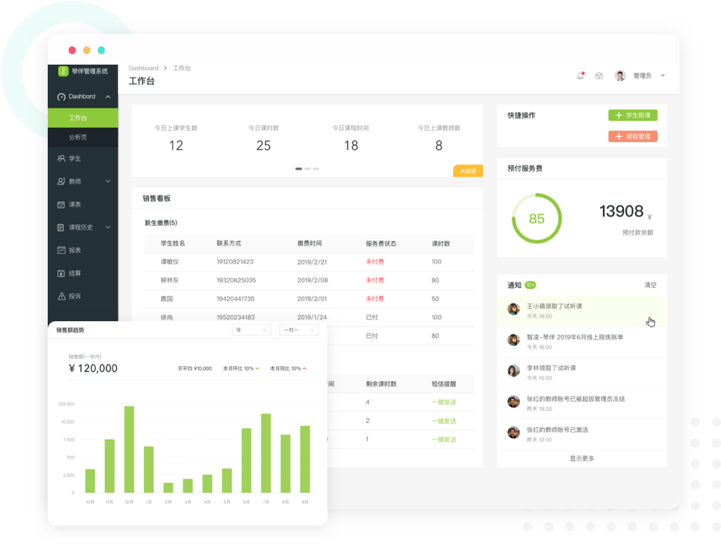 "琴伴在线课堂帮助我们走出了线下教育机构的困难。在互联网快速发展时给我们带来了商机。让我们可以快速进入线上教育的领域,且不用担心丧失自己生源"