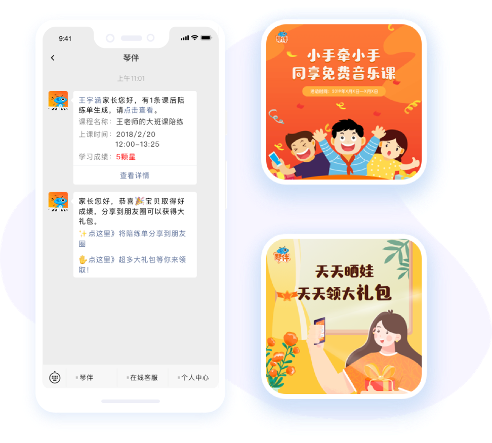 "通过琴伴在线教学工具,我们能够在疫情期间做到停课不停学,最大化地让学生们在线上保持了学习进度和节奏"
